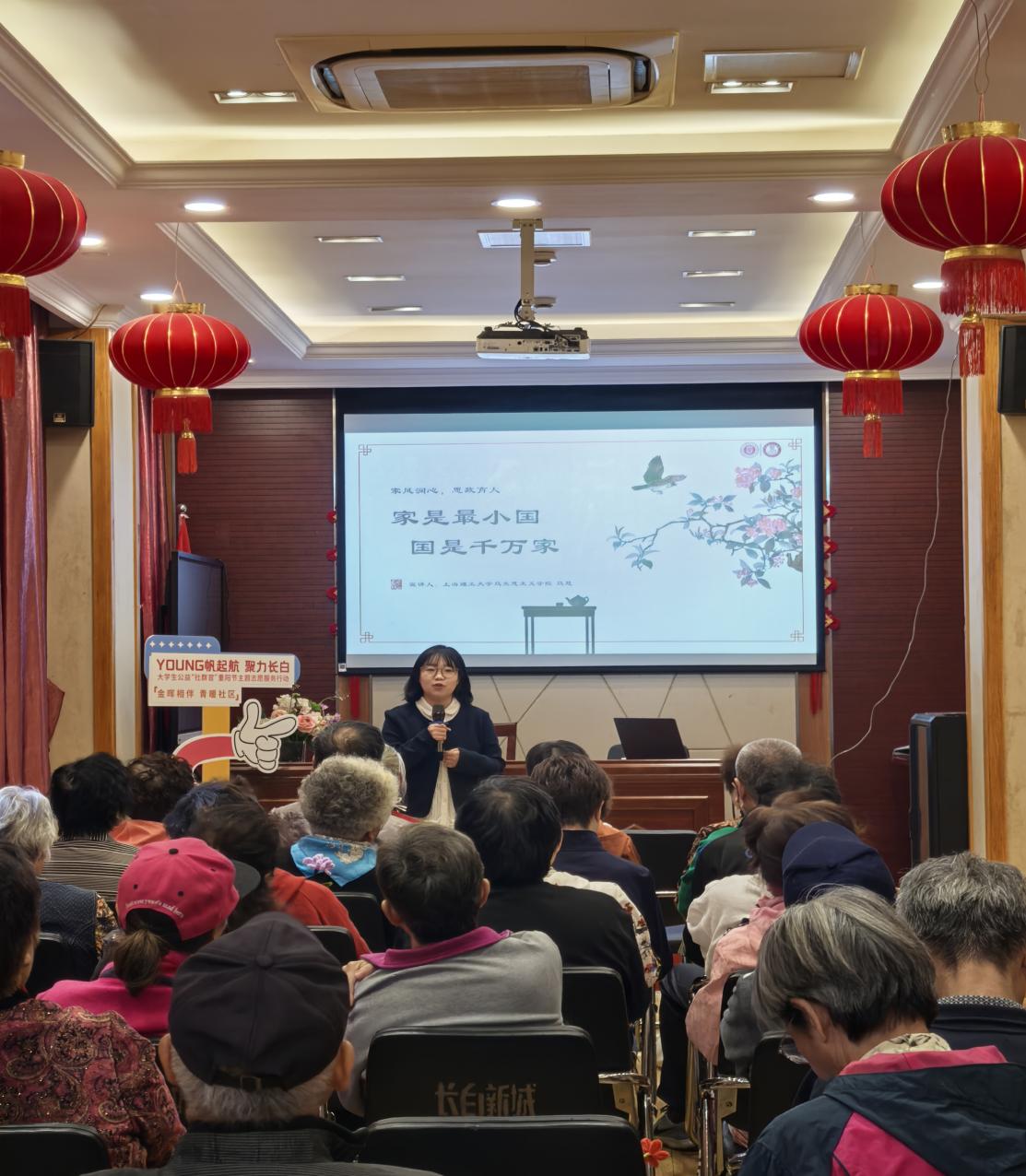 为深入学习贯彻习近平总书记关于注重家庭家教家风建设的重要论述,推动中华优秀传统文化与红色基因在基层落地生根。2025年10月25日,上海理工大学习近平新时代中国特色社会主义思想研习社(以下简称“研习社”)走进长白街道社区,以“百年征程传薪火青春聚力青年说”为主题开展巡讲活动,研习社成员马慧带来“家风润心,思政育人”主题宣讲。
