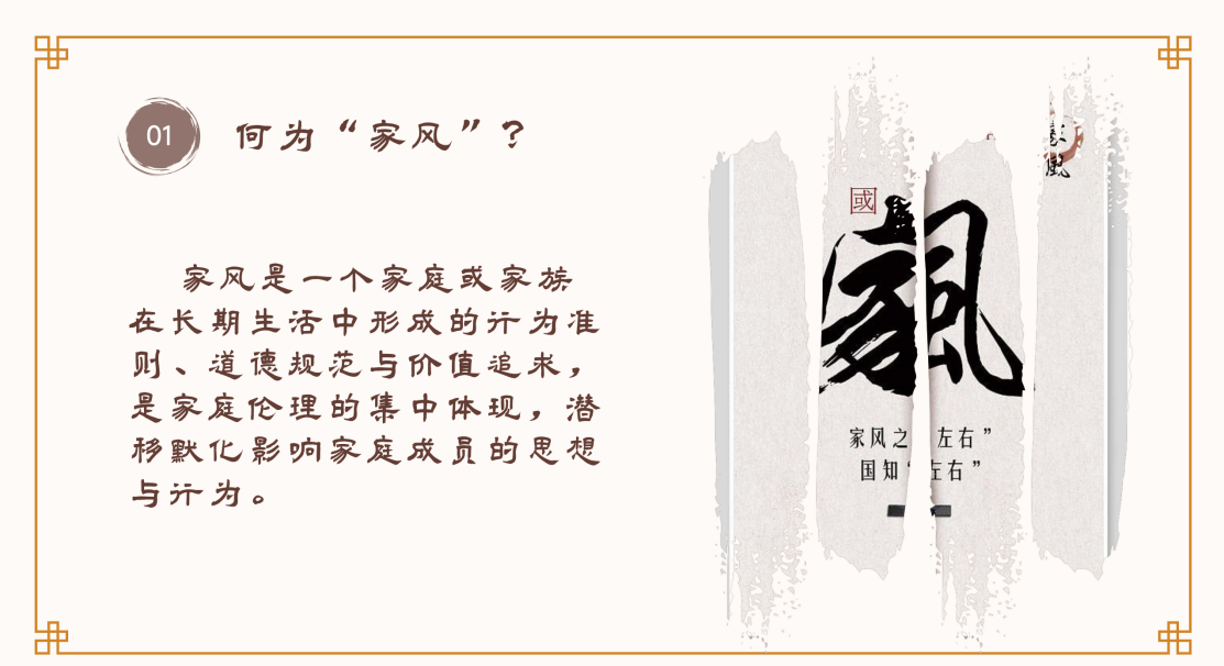 活动伊始,马慧同学以“家风”为核心开篇,结合诸葛亮《诫子书》、颜之推《颜氏家训》等文献中的古训,系统阐释家风作为“家庭行为准则、道德规范与价值追求”的内涵,指出其是家庭伦理的集中体现,更是潜移默化影响成员思想与行为的“无形纽带”。