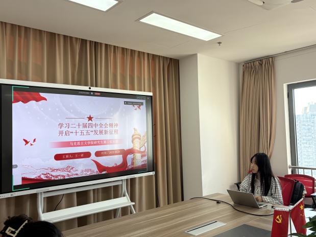 为深入学习贯彻党的二十届四中全会精神,引导青年党员传承长征精神、锚定“十五五”奋斗方向,激发广大党员的历史使命感与责任感,2025年10月24日,上海理工大学马克思主义学院研究生第二党支部于马院1117会议室开展了以“悟全会精神伟力,缅长征岁月光辉”为主题的主题党日活动。本次活动由支部组织委员张子晗主持,支部全体党员参与,紧扣时政热点,围绕四个环节展开,为党员们注入新的力量和动力。
