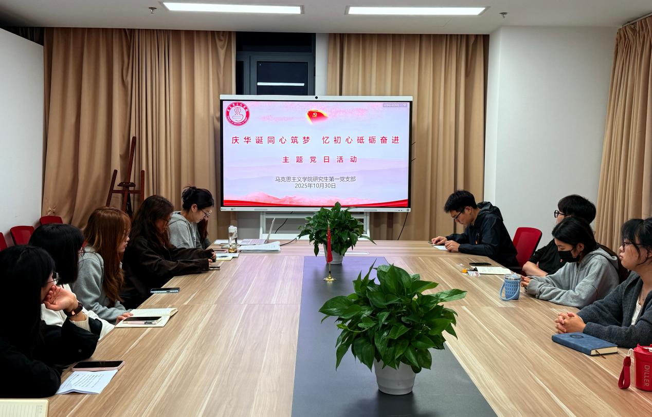 为热烈庆祝中华人民共和国成立76周年,回望民族奋斗征程,凝聚时代磅礴伟力,2025年10月30日晚,上海理工大学马克思主义学院研究生第一党支部在学院1117会议室开展“庆华诞同心筑梦,忆初心砥砺奋进”主题党日活动,此次活动由支部全体党员参与,并由支部宣传委员陈红主持。