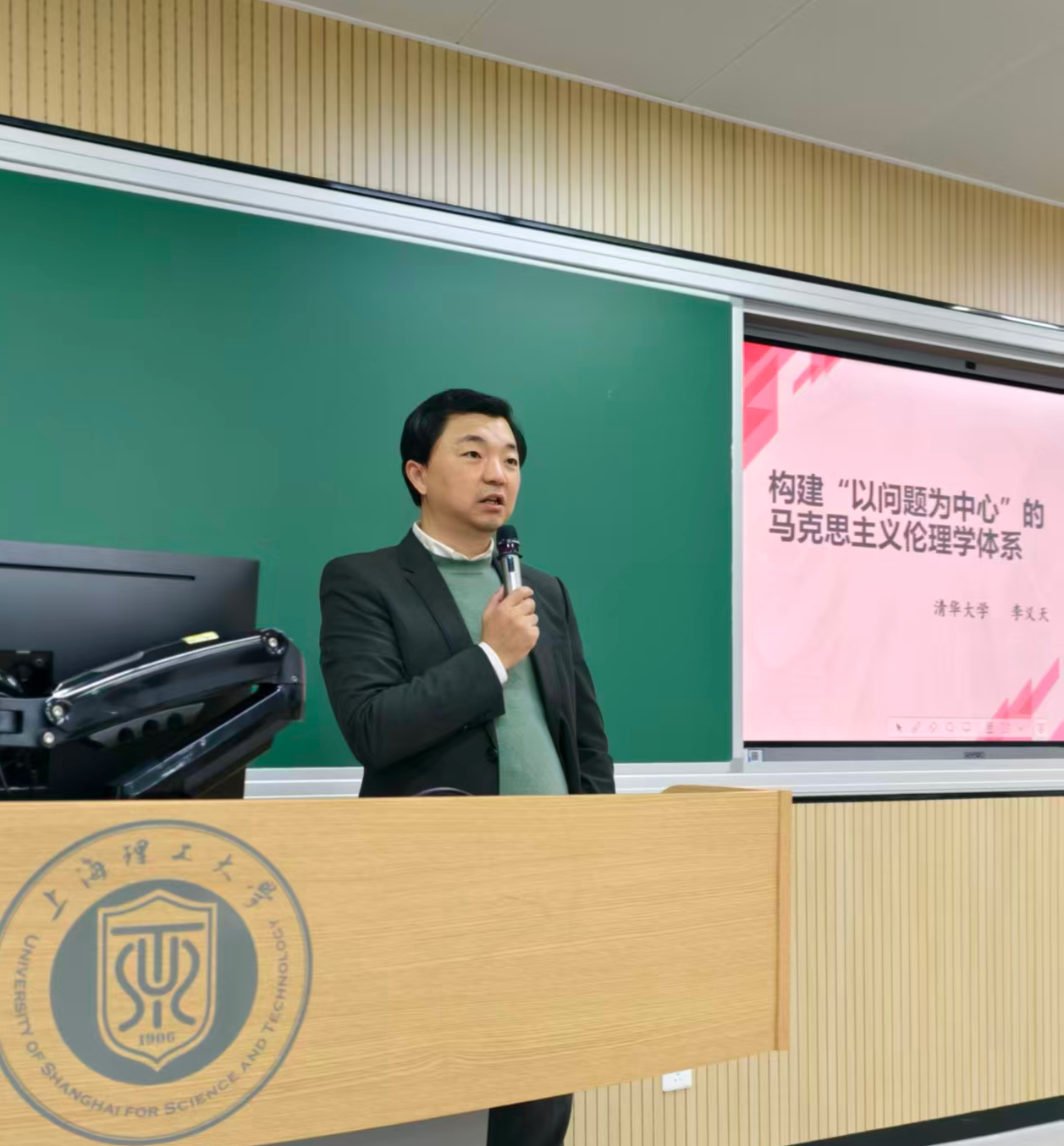 11月6日晚,上海理工大学马克思主义学院科学与工程伦理研究中心的系列伦理学术讲座在南四教举行,此次讲座特别邀请清华大学博士生导师李义天教授,为学院青年教师及研究生带来“以问题为中心的马克思主义伦理学体系”的专题研究,刘科教授主持讨论。李义天教授的讲座围绕马克思主义伦理学的四类问题展开,为在场师生带来一场兼具理论深度与实践价值的学术盛宴。