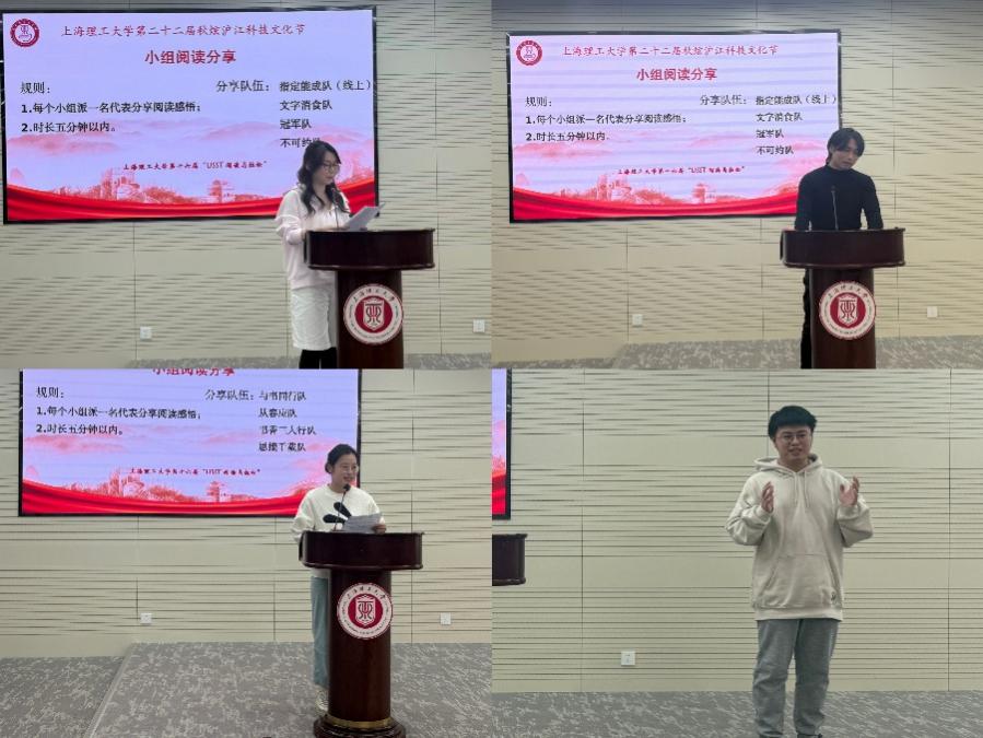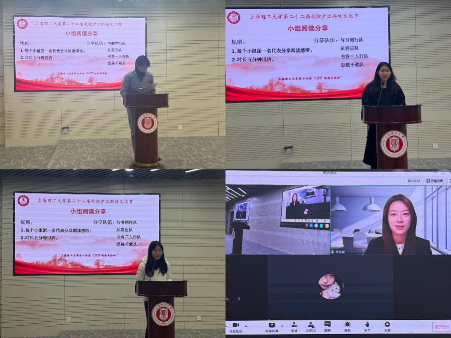 在自主阅读结束后,进行了中场休息。随后,研习社成员卢晓玉同学作了题为《青年一代的文化自信:在传承中担当,在开放中自强》的宣讲,强调青年作为新时代的领航者,要坚定文化自信,学习经典著作蕴含的精神和力量,让理论知识武装我们的头脑,指引我们发展的方向;随后,由上海理工大学“新时代•中国说”大学生讲师团、精文社科读书会成员卢顺意同学作了《迈向发展新境界:以强大国内市场支撑新发展格局》的宣讲,立足我国经济发展的新情况,以青年的视角解读了构建新发展格局的政策举措,坚定了同学们贯彻“十五五”规划的信心和决心。