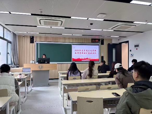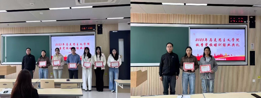 12月2日下午,马克思主义学院2025年秋季党校培训班结业典礼顺利在四教303教室举行,此次典礼由马克思主义学院党委副书记吴军及全体学员参加,并由马克思主义学院研究生第一党支部宣传委员陈红主持。