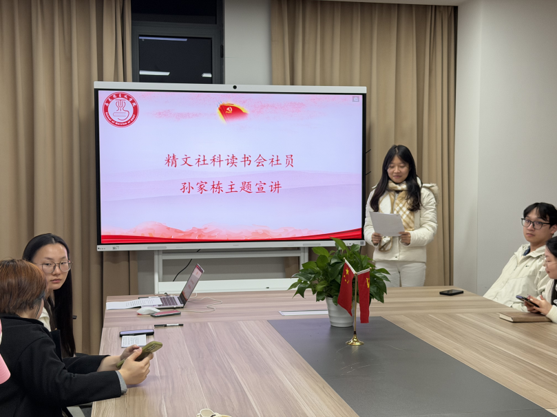 穿越历史风云,聆听革命故事,是坚定理想信念、汲取奋进力量的重要源泉。本次故事分享会于2025年12月9日晚在马克思主义学院1117会议室举办,由马克思主义学院研究生第一党支部纪律委员陈文俊主持,支部全体入党积极分子及精文社科读书会代表参加。会上,精文社科读书会成员孙家栋进行主题宣讲、卢晓玉、宋慧、朱美怡、韩思雨四位入党积极分子结合自身所学所悟,生动讲述了陈云同志的光辉事迹。