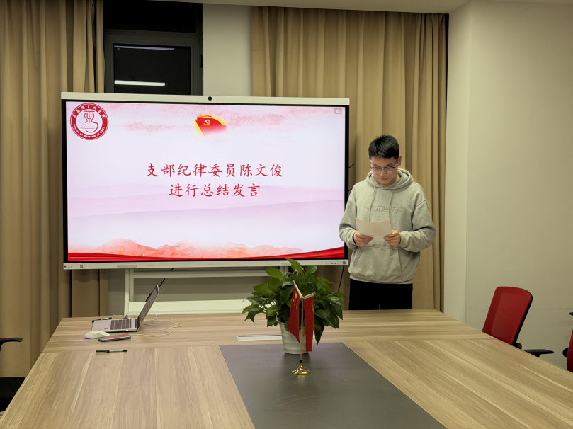 活动尾声,马克思主义学院研究生第一党支部纪律委员陈文俊对本次活动作总结发言。他指出,本次支部特色活动既有效增强了组织凝聚力、创新了理论学习教育形式,更切实提升了成员的党性修养与思想觉悟。并强调到,全体成员要以此次活动为契机,持续深化党史学习,自觉弘扬伟大建党精神,厚植红色基因,从革命历史中不断汲取奋进力量,以更加饱满的热情和务实的作风投身学习与工作。
