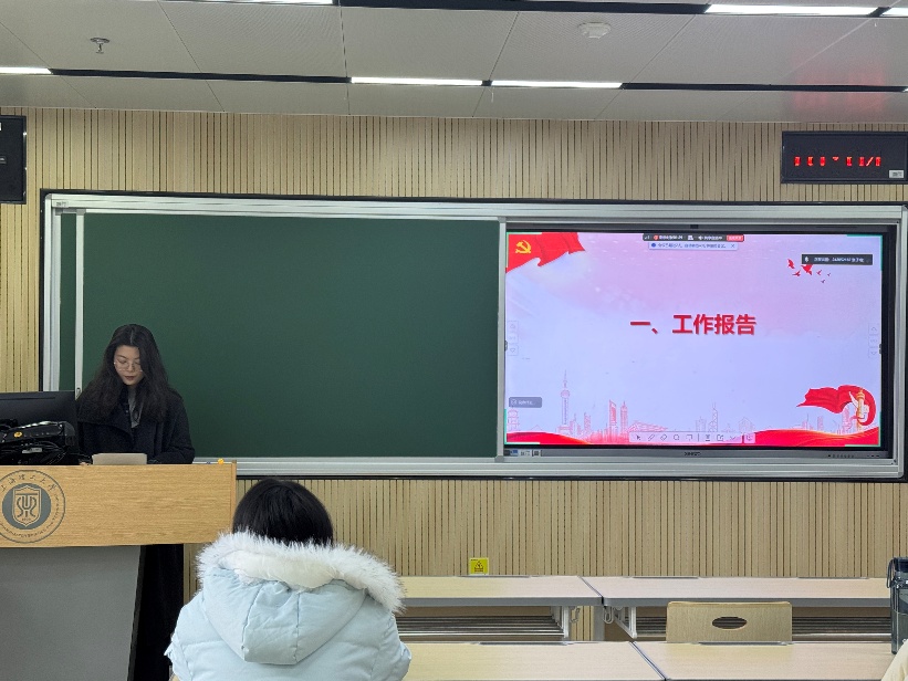 预备党员接收环节结束后,会议进入支部委员会换届选举议程。首先,支部书记吴鸿玉同志代表上届支部委员会作工作报告,全面回顾了过去一年在组织建设、理论学习、党员培养、实践服务等方面的工作成效,系统梳理了工作中存在的问题与不足,报告得到全体党员的一致认可。报告之后,全体与会党员严格按照选举程序,以无记名投票的方式,最后票决产生了由张子晗、顾鑫怡、朱喆、刘礼俊、许启蔚同志组成的新一届支部委员会。