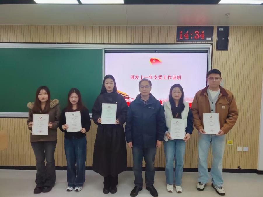 最后,学院党委副书记吴军为上一届支部委员颁发了荣誉聘书,并作总结发言,对新接受和转正的预备党员表示祝贺,对当选的新一届支部委员会成员表达期望,同时充分肯定了上届支部委员会的辛勤付出与工作成效。