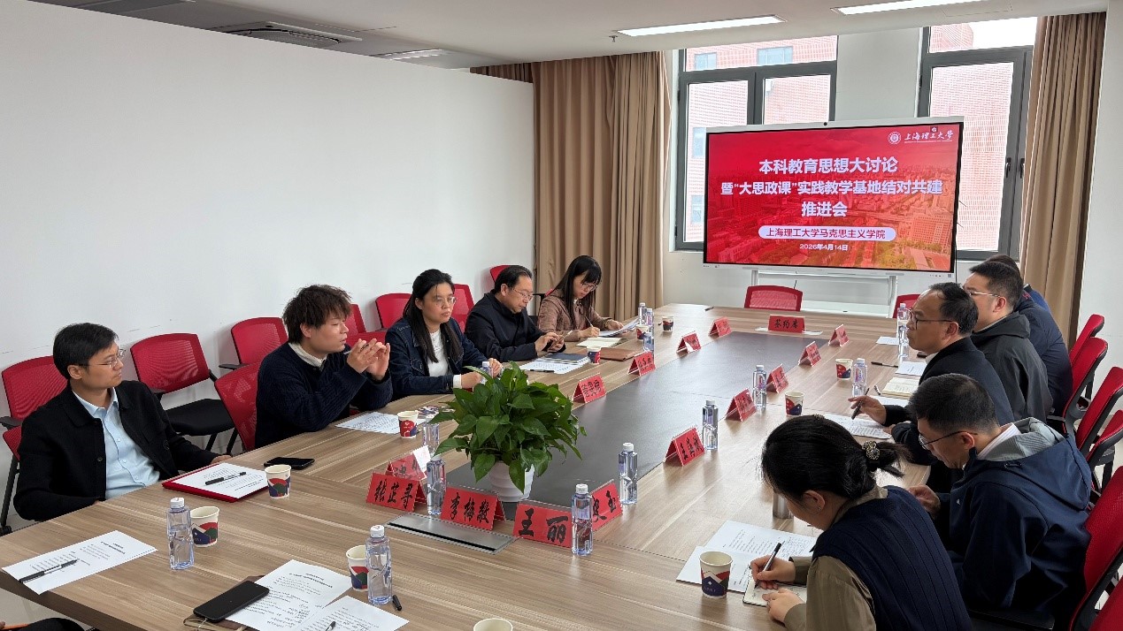 为进一步落实“大思政课”建设任务,用实际行动践行本科教育思想大讨论的精神要义,不断思考、积极探索思政课实践教学,推动学校立德树人综合改革工作,4月14日,马克思主义学院召开“大思政课”实践教学基地结对共建推进会。上海市三家“大思政课”实践教学基地——上海市杨浦区红色文化发展中心(国歌展示馆)党支部书记张亚非、宣教科俞娇,上海印刷博物馆副馆长管雯珺、钱以葭,刘湛恩烈士故居红色文化主题馆负责人孔娜,应邀出席。上海理工大学教务处副处长姜晨,上海理工大学团委书记杨阳,上海理工大学机械工程学院副院长、“大思政课”实践教学基地负责人沈伟,马克思主义学院副院长郭根,马克思主义学院结对教师代表参加交流座谈。会议由马克思主义党委书记彭宗祥主持。