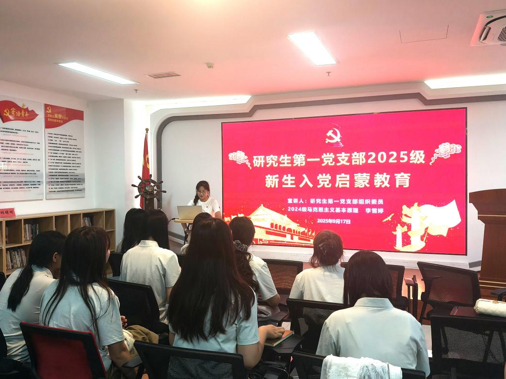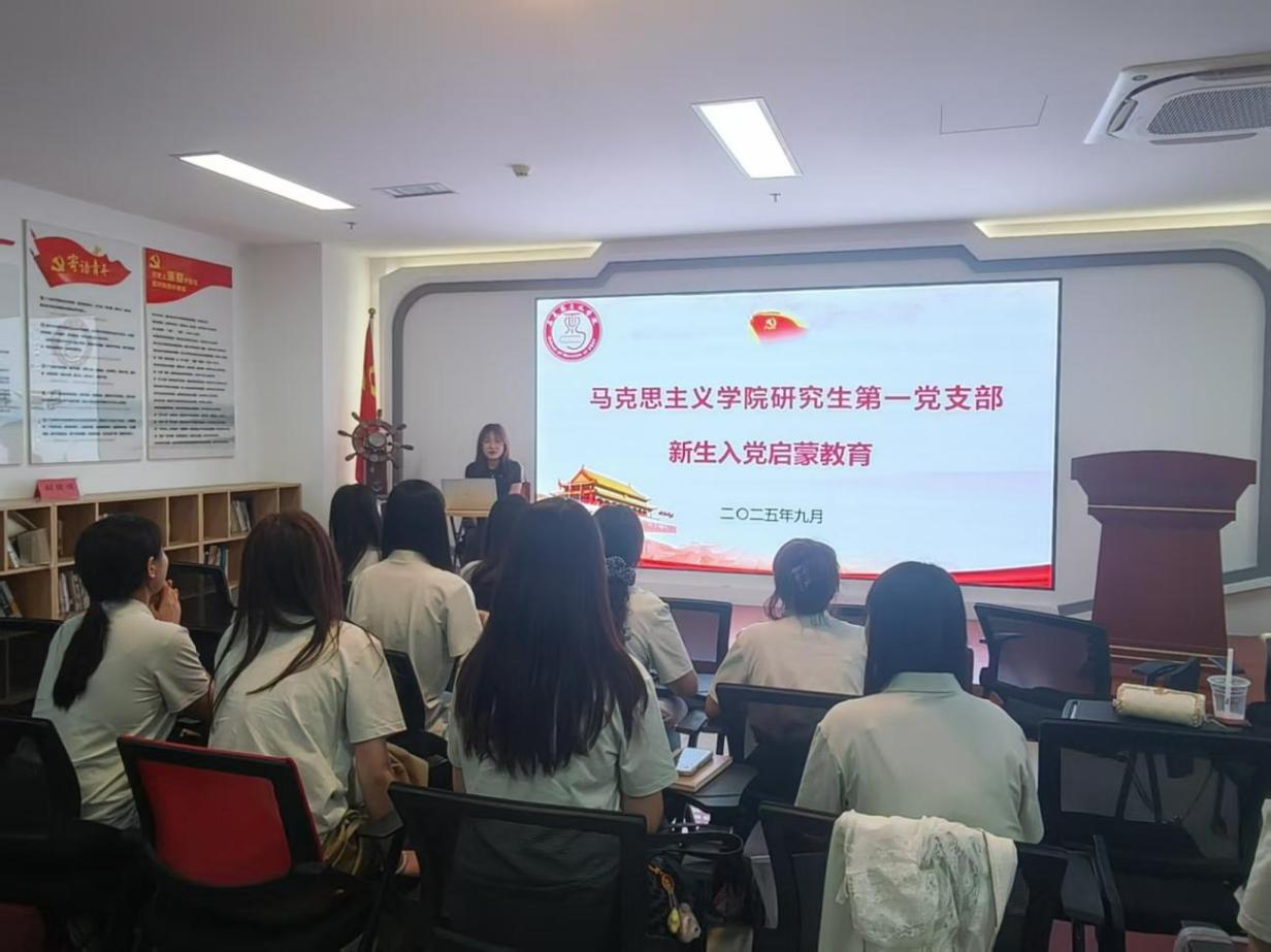 为赓续红色血脉,激发组织活力,引导2025级新生坚定理想信念、端正入党动机,上海理工大学马克思主义学院研究生第一党支部于2025年9月17日下午在学院1015会议室组织开展了研究生新生入党启蒙教育活动。活动由思想政治教育、中国近现代史基本问题研究方向新生参加,研究生第一党支部宣传委员陈红主持。