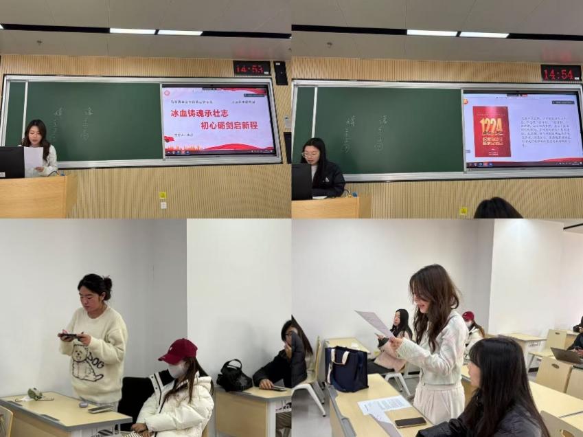 转正大会后,十二月主题党日活动以“冰雪铸魂陈壮志,初心砺剑启新程”为主题展开。研习社成员郭舒婷同学作主题宣讲,详细回顾了1950年长津湖战役的作战过程。随后,全体党员观看长津湖影片片段,两位党员同志刘礼俊、龙斯民分享观影感悟,表示将把爱国情、强国志融入学习工作,传承红色基因。