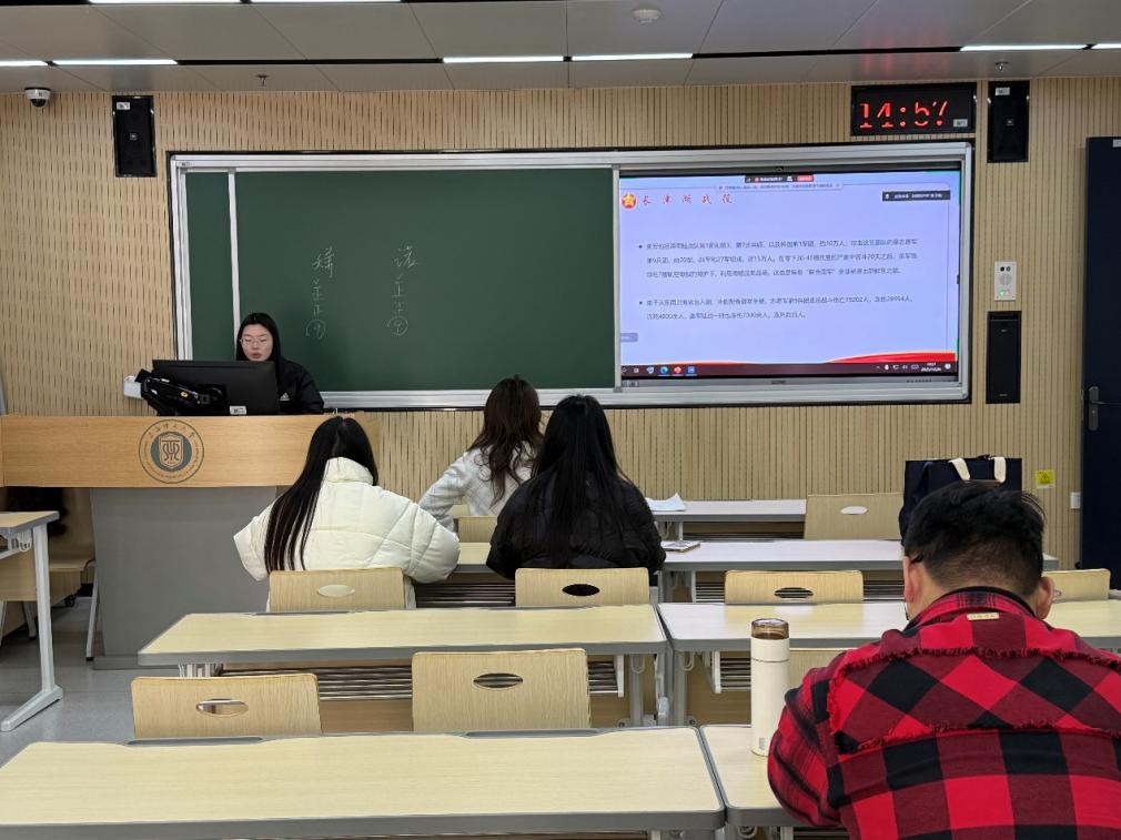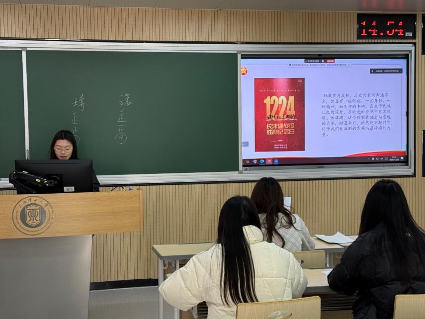 为铭记抗美援朝战争的伟大胜利,传承革命先辈的英雄精神,12月26日,马克思主义学院研究生第二党支部在四教303举办了“冰雪长津 英雄赞歌”主题宣讲活动。研习社成员郭舒婷同学围绕长津湖战役的历史背景、惨烈战况、经典事迹及深远影响展开深入讲解,带领全体成员重温那段热血沸腾的峥嵘岁月,在红色教育中凝聚奋进力量。