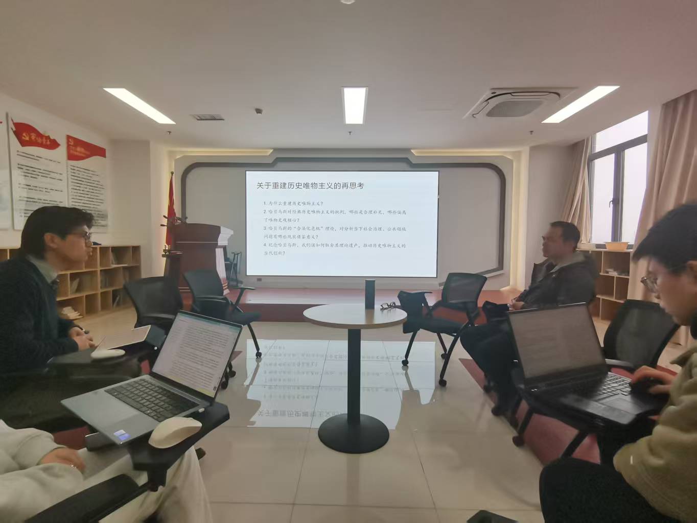 最后围绕此次读书会四大核心议题,参与者各抒己见、理性交流,深入探讨哈贝马斯理论对经典历史唯物主义的补充与局限、“合法化危机”理论的现实意义,以及历史唯物主义重建的动因与理论遗产取舍,现场思辨氛围浓厚。