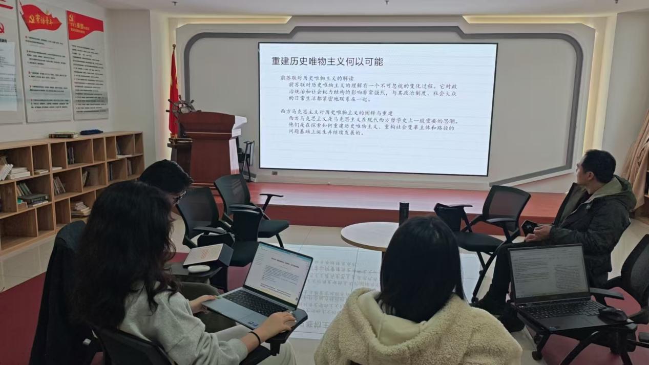 紧接着领读人结合PPT内容,围绕四大核心板块精讲理论:梳理“重建历史唯物主义”的理论缘起、核心框架,客观分析相关学术争议,并结合当下语境解读理论的当代启示,为后续深度研讨做好充分的理论铺垫。