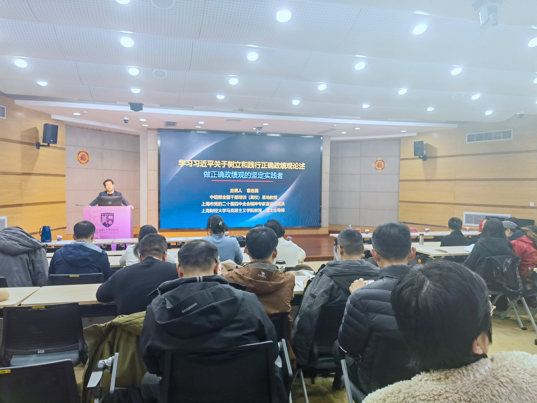 为深入学习贯彻习近平总书记关于树立和践行正确政绩观的重要论述,全面提升思政课教师的政治素养与育人担当,2026年3月24日,上海理工大学马克思主义学院召开树立和践行正确政绩观专题学习会。会议特邀上海财经大学马克思主义学院章忠民教授作题为《学习习近平关于树立和践行正确政绩观论述 做正确政绩观的坚定实践者》的专题辅导报告,学院全体教师参加学习。
